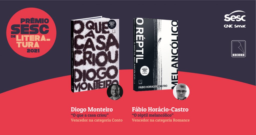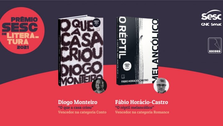 Os dois livros vencedores do Prêmio Sesc de Literatura 2021 serão lançados nesta segunda-feira (8), às 19h, em evento virtual, promovido pelo Sesc e pela editora Record. Na live, Fabio Horácio-Castro e Diogo Monteiro, ganhadores nas categorias Romance e Conto, apresentam suas obras ao público e falam sobre o processo criativo e a expectativa em relação ao ingresso no mercado editorial. O encontro será transmitido pela página do Prêmio Sesc no Facebook e pelo YouTube Sesc Brasil.