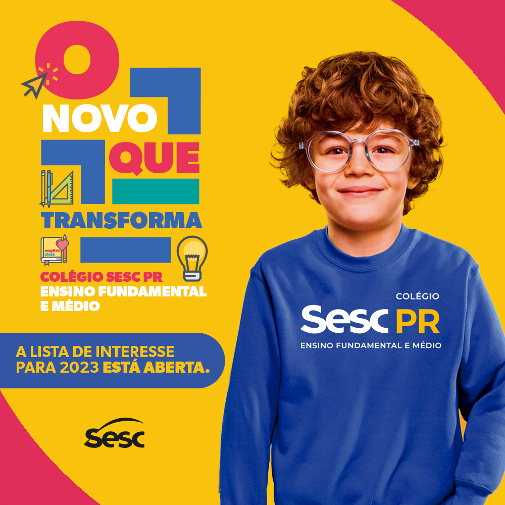 Primeira Unidade Sesc a contar com Ensino Fundamental no Paraná, o Colégio Sesc PR, em Curitiba, terá turmas do 1º ao 9º ano na modalidade integral e Ensino Médio Integrado ao Senac, com a oferta do curso Técnico em Informática para Internet, atendendo tanto dependentes de trabalhadores do comércio quanto o público em geral.