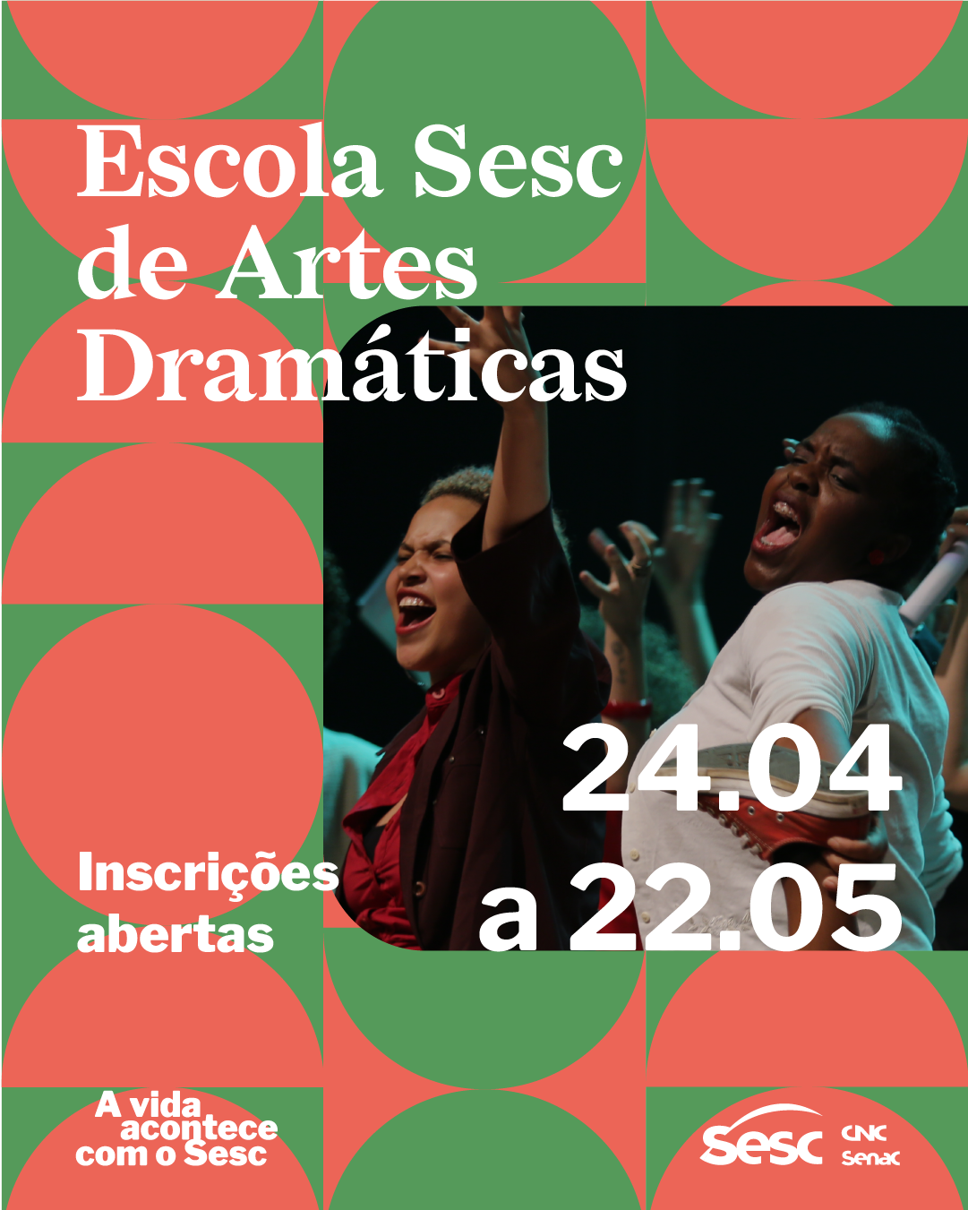 A Escola Sesc de Artes Dramáticas oferece 50 vagas gratuitas para o Curso Técnico em Teatro, que garante Habilitação Profissional Técnica para atores e atrizes, sendo metade para ingresso no segundo semestre de 2023 e a outra metade para início no primeiro semestre de 2024.
