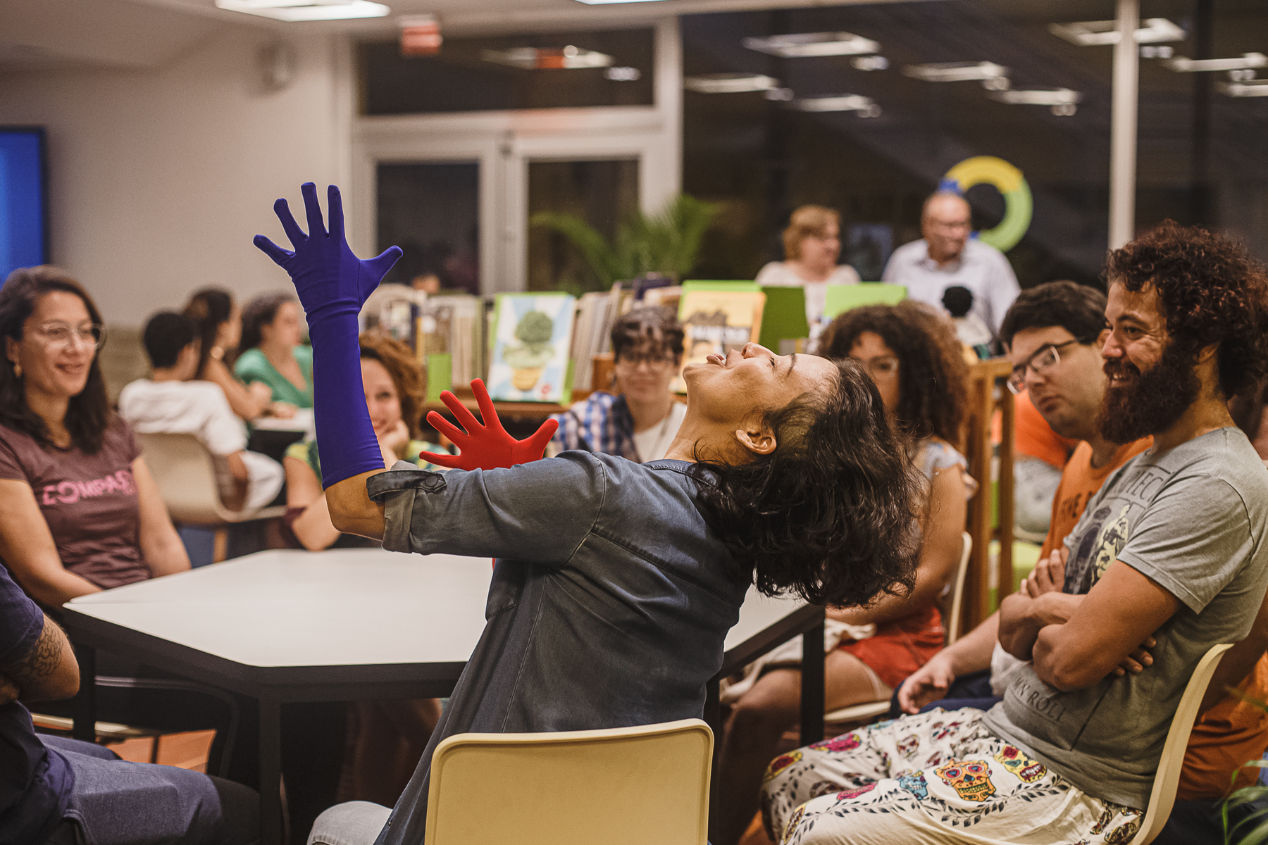 Oficina que compartilha os princípios de criação da Biblioteca de dança, na qual cada pessoa participante é convidada a se tornar um “livro vivo” que conta obras cênicas às quais assistiu por meio de narrações, movimentos, fragmentos de cenas e outros elementos que colaborem na reativação dessas memórias. O que pode uma obra de arte na vida de uma pessoa? Como compor com memórias artísticas a partir dos afetos e encontros?
