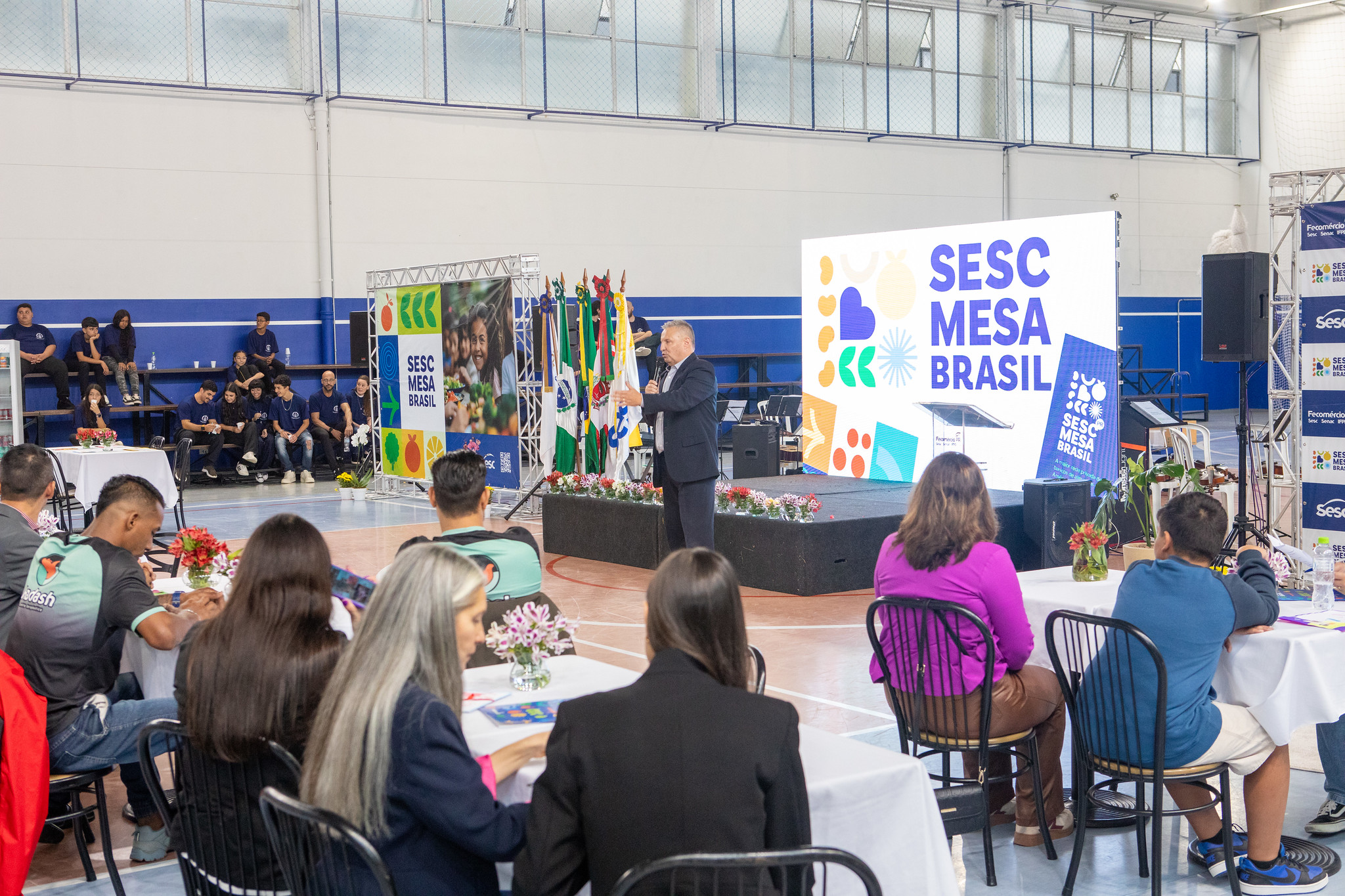 Representando o diretor regional do Sesc PR, Ulisses Rodrigues, o diretor da Divisão de Esporte, Lazer e Saúde, Marcus Vinícius de Mello, agradeceu aos doadores. “Vida sem alimento não existe. Hoje é um reconhecimento para vocês que ajudam esse programa. Quanto mais doadores tivermos, mais alimento a gente coloca na mesa das instituições. E tudo isso é feito com muita transparência”, afirmou Mello. Os vice-presidentes da Fecomércio, Paulo Salesbram e Paulo Nauiack, o conselheiro do Sesc PR, Zildo Costa, e o diretor regional interino do Senac PR, Jeferson Basso, também comentaram sobre a grandeza do Mesa Brasil que faz a diferença na vida de tantas pessoas.