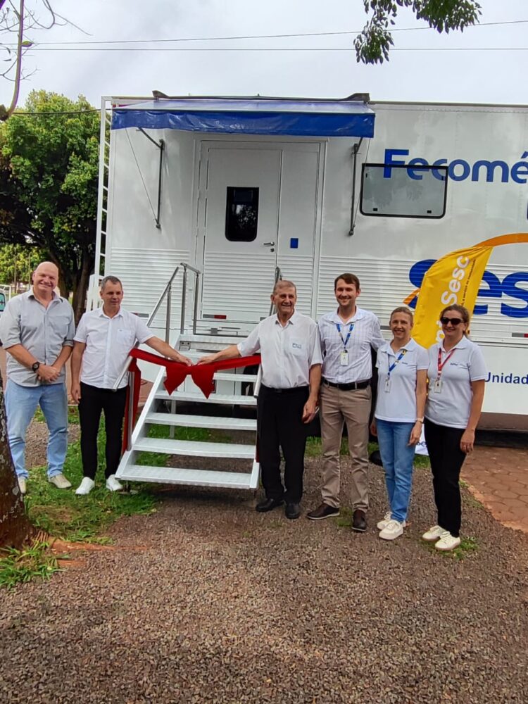 Estiveram presentes o prefeito, Cesar Seidel; a primeira dama, Cristiane Seidel; o secretário de Saúde, Miguel Lang; o presidente do Sindicomar e conselheiro do Sesc Paraná, Ademar Bayer; o gerente executivo do Senac, Osnei Alves; e o gerente da unidade Sesc, Rafael Francisco Huber, esses dois últimos de Marechal Cândido Rondon. Serão disponibilizadas 1.420 consultas odontológicas em Quatro Pontes. A unidade móvel está localizada na Rua São Gabriel, 1930.