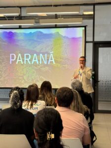 Na sequência do evento, os agentes de viagem foram encaminhados para um momento em que os três estados tiveram oportunidade de apresentar-se e falar de seus principais roteiros e produtos. O gerente de Turismo Social do Sesc PR, Augusto Zortéa, apresentou o estado do Paraná e as regiões turísticas com inúmeras possibilidades de atrativos para além dos tradicionais. Na sequência, pitches de empresários do trade turístico paranaense sobre os seus serviços e roteiros.