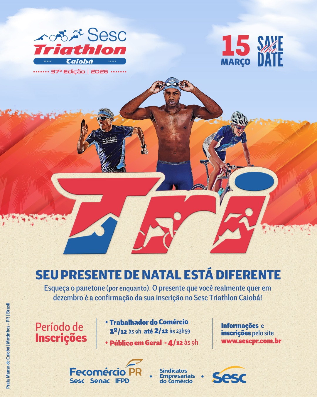 A 37ª edição do Sesc Triathlon Caiobá será realizada em 15 de março de 2026, em Matinhos, no litoral do Paraná. A competição conta com as distâncias Olímpica (1,5km de natação, 40km de ciclismo e 10km de corrida, para as categorias Elite e Amador Olímpico) e Short (750m de natação, 20km de ciclismo e 5km de corrida, para as categorias Speed, Mountain Bike, Trabalhador do Comércio, PcD e Revezamento em Trio).