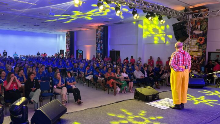 “O Sesc é vida”. As palavras de Maria Lúcia, de 77 anos, de Ivaiporã, são compartilhadas pelos 358 participantes do Encontro Sesc 60+, que acontece até sexta-feira (17), no Sesc Caiobá, em Matinhos. Com o tema Ritmos do Mundo, o evento propõe uma viagem pela diversidade de sons, movimentos e tradições de diferentes culturas. Entre as atrações que marcaram a abertura, nesta terça-feira (14), destacam-se o espetáculo com o humorista Nerso da Capitinga e a apresentação musical de Douglas Borsatti.