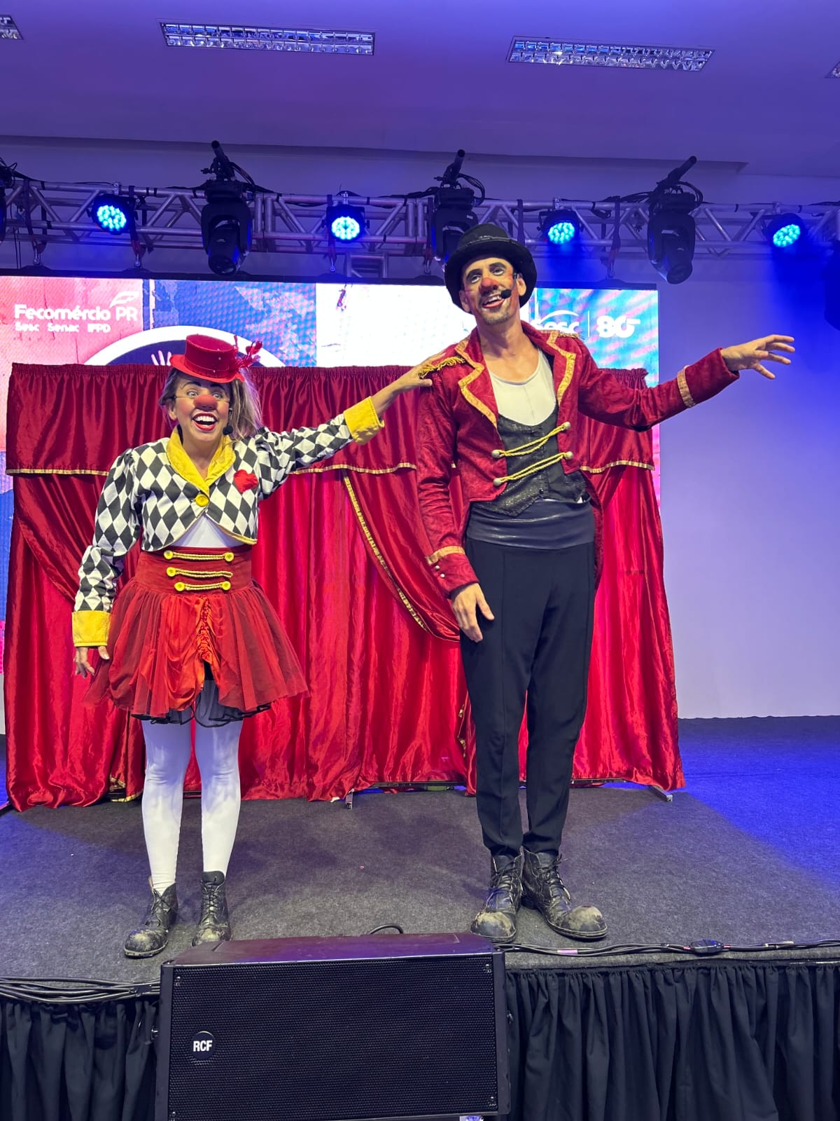 Para encerrar o dia, os participantes acompanharam o pôr do sol na piscina e prestigiaram o espetáculo do Gran Circo Estopim com a Cia dos Palhaços.