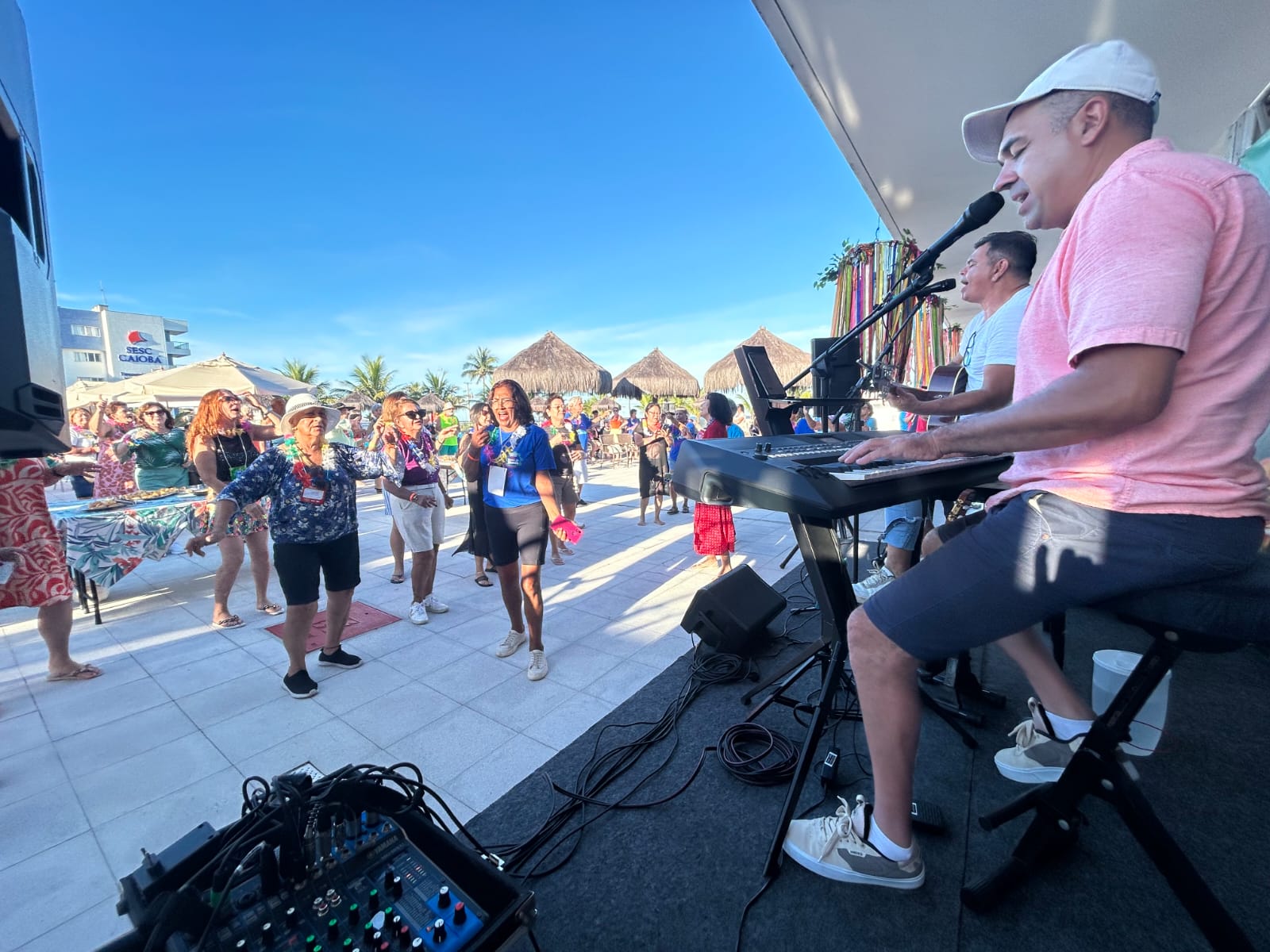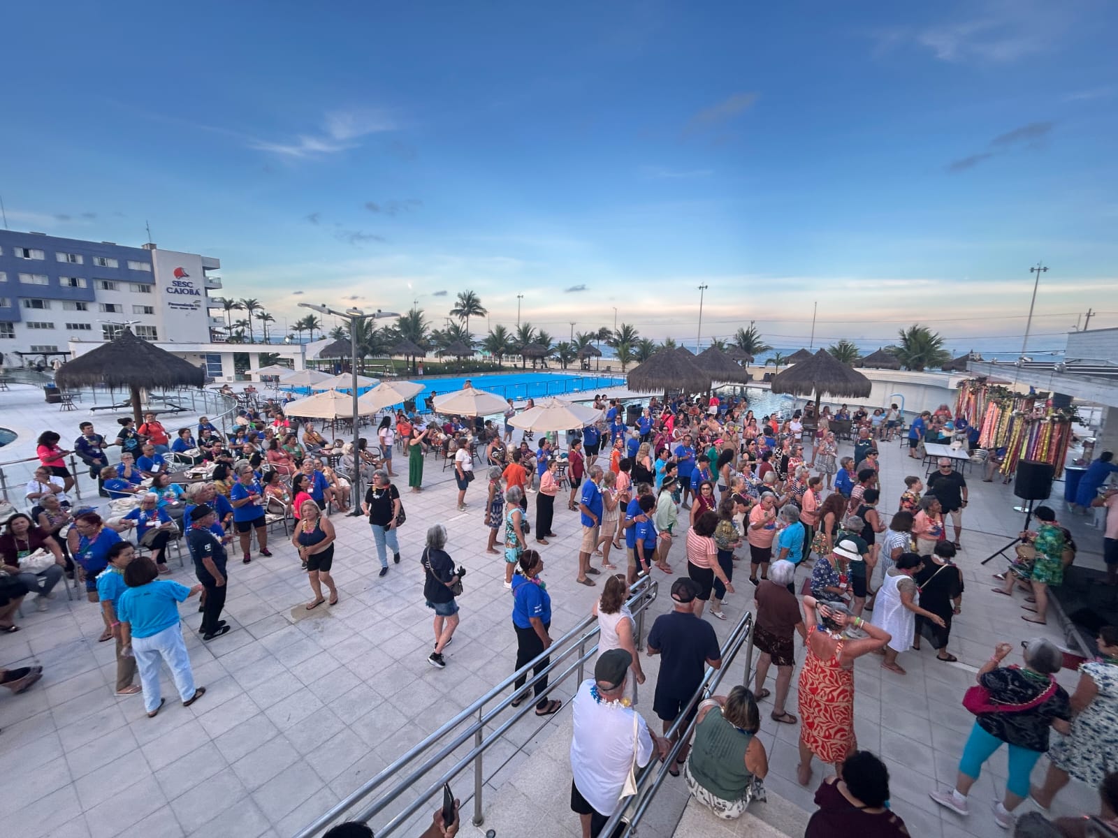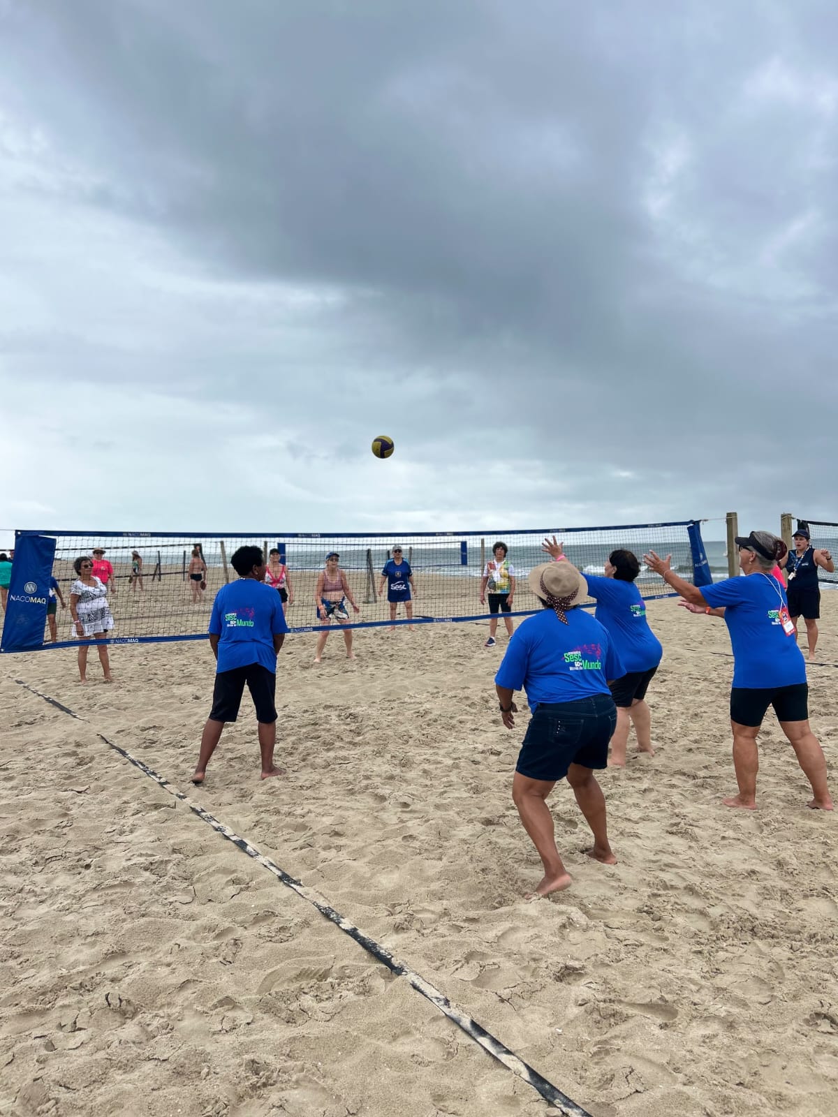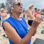A programação do dia foi diversificada. Na praia, os participantes puderam aproveitar atividades como vôlei, bocha, bola agarrada, yoga, beach tênis, alongamento, dança e caminhada, incentivando o movimento e a convivência em grupo.