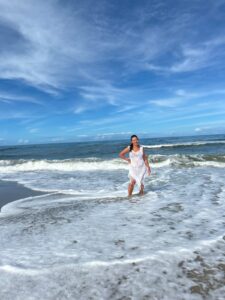 Ivonete de Fátima contemplando o mar pela primeira vez. Fotos: Bruna Lopes