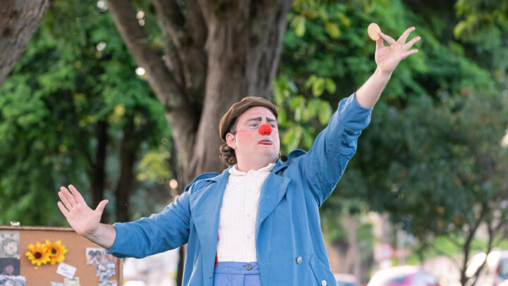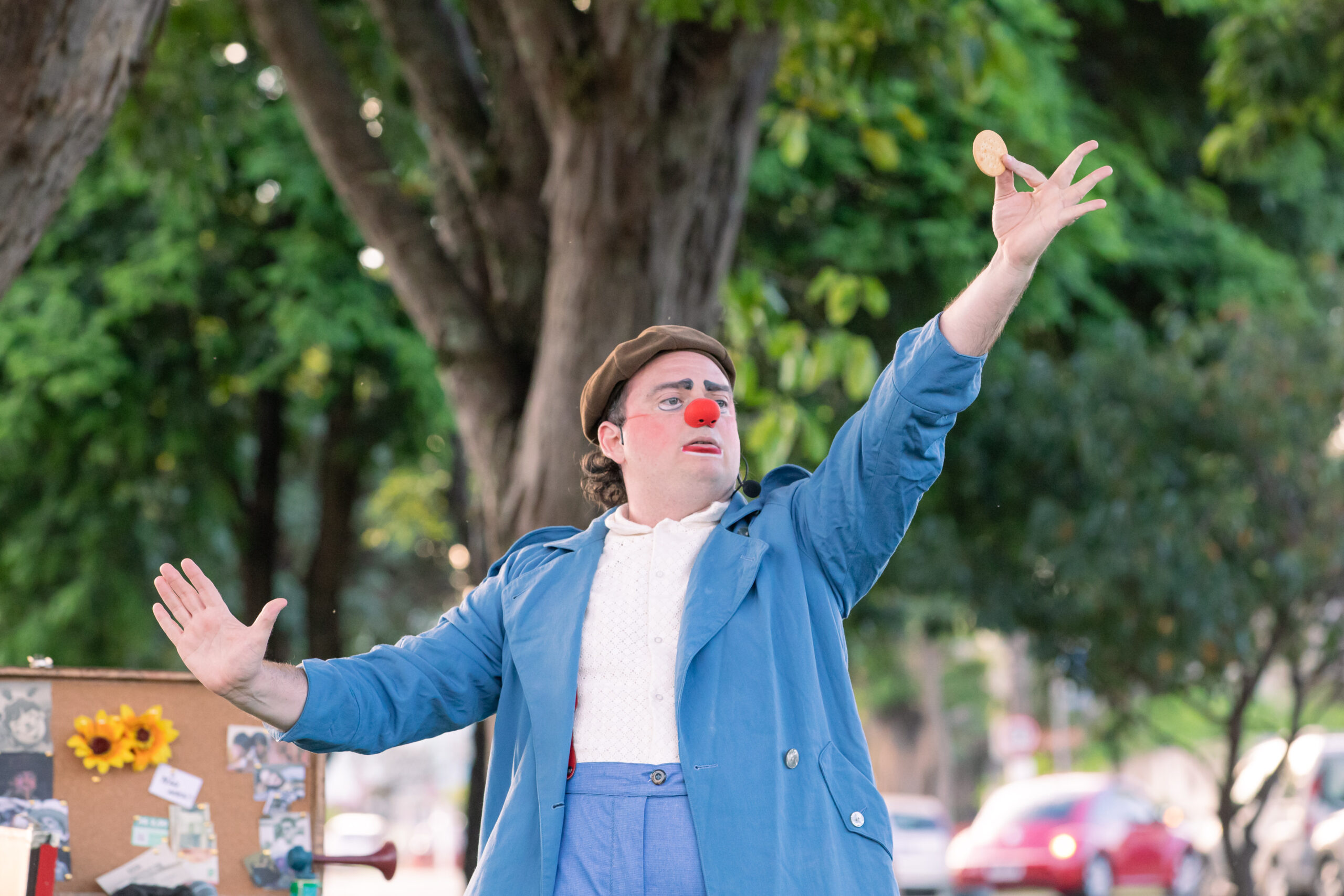 Lambreta é um tipo caipira, como um caixeiro viajante e falastrão, que abre suas malas para o público, expondo seus pertences pouco usuais para a brincadeira que se formará. O público presente é o protagonista da cena, escolhe os caminhos dos “solos” que acontecerão, escolhendo até o mesmo o figurino do Palhaço que irá se apresentar. Tudo isso esperando o grande número prometido: Música clássica do cinema, executada com um belo trompete dourado. Até chegar ao “gran finale”, muita coisa acontece. O público faz a grande apresentação do artista, realiza (ou não) grandes mágicas junto com o palhaço e, ao final, ele mesmo tem que ajudar na execução o solo derradeiro. Tudo “tocado” com música e brincadeira, num encontro fino, elegante e sincero.