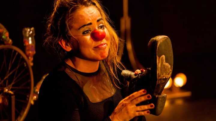 Ao longo desse percurso, o que começa como um jogo cênico se transforma em um mergulho intenso. Entre tropeços, improvisos e tentativas de manter o controle, a palhaça se vê atravessada pela força sombria da personagem, sendo lentamente tomada por sua ambição e desmedida — até se aproximar perigosamente da loucura.