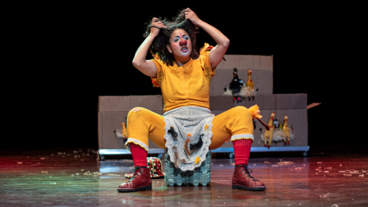 Quem nasceu primeiro? O ovo ou a galinha? Com essa questão, Palhita acorda com as galinhas, pega os ovos e os leva para o povo. Pouco importa quem nasceu primeiro, mas para que se nasceu e ela acredita mesmo que nasceu pra ser artista. Entre um ovo e uma galinha, de grão em grão, vai brincando de viver seus sonhos. A partir desse manifesto, Palhita mergulha no universo de histórias das mulheres da sua família e as entrelaça com a palhaçaria para manifestar, por meio do riso, suas inquietações, fracassos e vitórias.