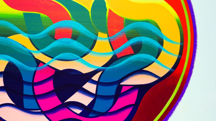Paulo Kurazumi (São Bernardo do Campo, SP) vive e trabalha em Sorocaba, no interior paulista. Desde a conclusão de sua pós-graduação em História da Arte na Faap (São Paulo, 2013), o artista se dedicou à prática de ensinos em ateliês coletivos, tendo lecionado na Pinacoteca de São Bernardo do Campo. Formas espiraladas, serpentes sem cabeça e cores vibrantes são formas do sublime movimento infinito que Paulo Kurazumi encontrou por meio da meditação em Bhakti Yoga para criar pinturas de dimensão poética espiritual. O artista convida o observador ao transe meditativo por meio da pintura, valendo-se pela teoria que todos somos partículas do tempo, em que corpo, alma, imaginação, sonho e amor se manifestam como expressões transcendentais.