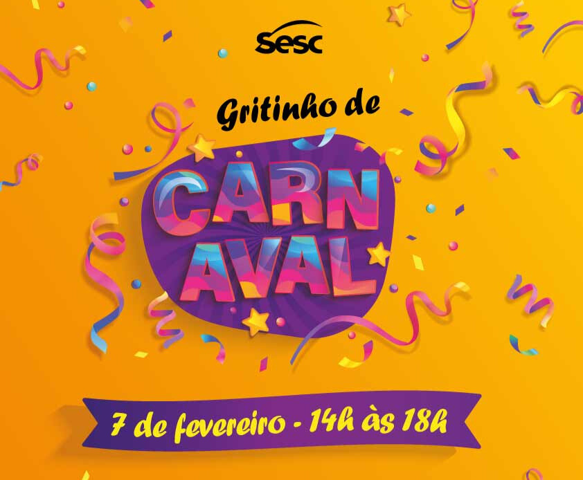 Está chegando a quarta edição do Gritinho de Carnaval Sesc da Esquina! Em 2026, será uma folia brincante e contagiante para toda a família. Vai ter confete, serpentina, desfile de fantasia, camarim de pintura facial e diversas oficinas temáticas, venha fazer seu próprio estandarte e sua própria máscara carnavalesca!
