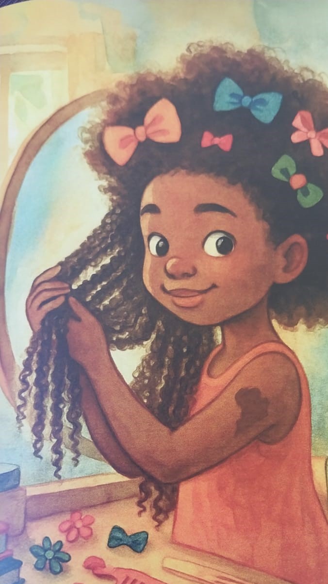 “Os Cabelos de Alika” é um livro infantojuvenil que celebra a beleza, a identidade e o afeto por meio da história de uma menina negra que ama seus cabelos crespos.