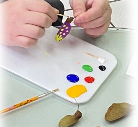 A atividade acontece durante o horário de funcionamento da biblioteca e propõe a criação de pequenos pássaros a partir de sementes, explorando cores, formas e imaginação. As criações passam a integrar uma instalação coletiva no espaço.