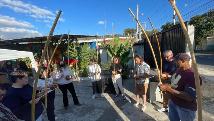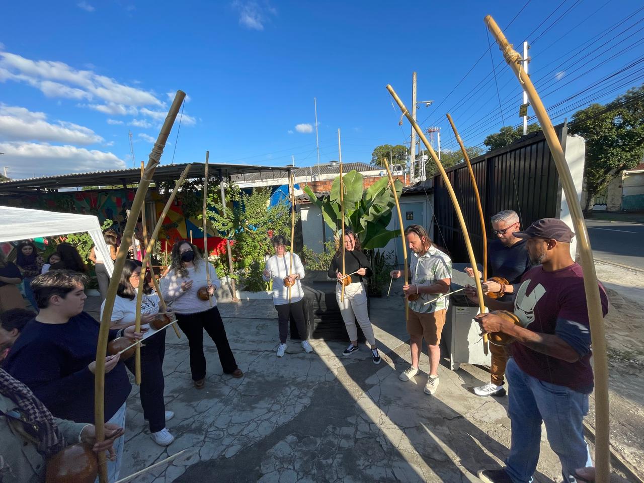 A oficina “Entre Rodas e Berimbaus: Capoeira Brincante” é uma atividade cultural e educativa que promove a valorização das tradições afro-brasileiras. Por meio do jogo, da música e da expressão corporal, os participantes aprendem sobre a história da capoeira, seus ritmos e movimentos. A prática desenvolve habilidades físicas, como coordenação e equilíbrio, além de incentivar o respeito, a disciplina e o trabalho em grupo. O berimbau, o atabaque e o canto coletivo reforçam a importância da oralidade e da ancestralidade africana. A oficina também estimula a autoestima e o empoderamento dos participantes, promovendo a inclusão social. É um espaço de aprendizado dinâmico, que une cultura, arte e educação.
