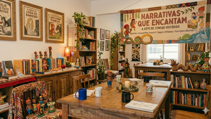 Nesse sentido, a narrativa oral ocupa um lugar central, configurando-se como um importante instrumento de perpetuação da memória coletiva e de fortalecimento dos vínculos culturais. Contar histórias é, portanto, um gesto de partilha e de afeto, que envolve tanto aquele que narra quanto aquele que escuta, promovendo conexões, despertando a imaginação e contribuindo para a construção de sentidos no mundo.