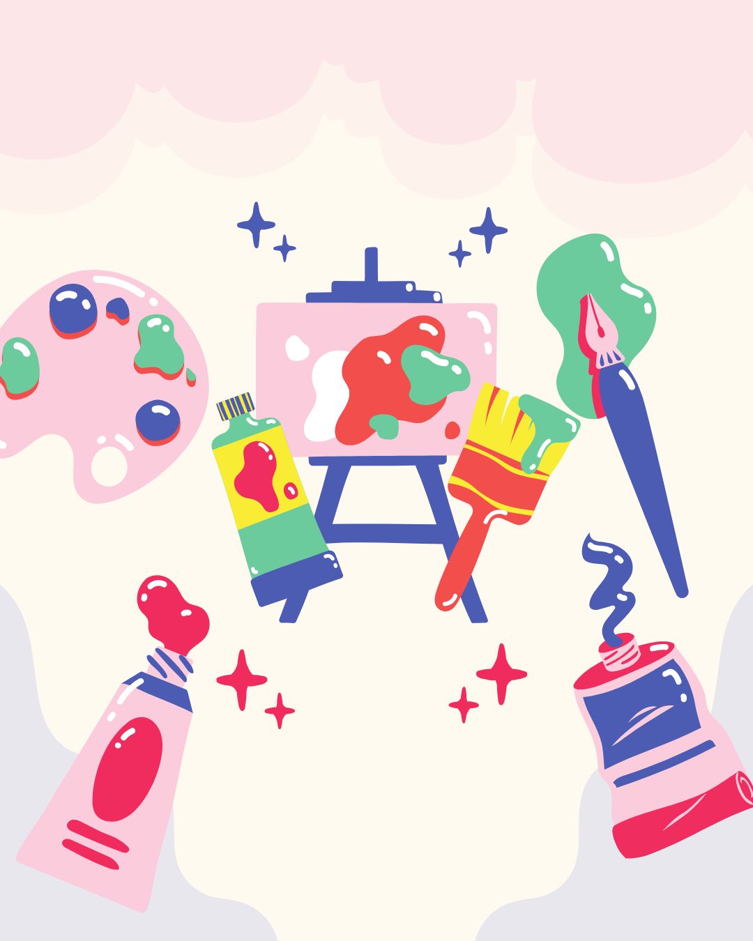 As atividades estimulam a expressão artística e a criatividade, favorecendo o contato com diferentes linguagens e a vivência coletiva por meio da arte.