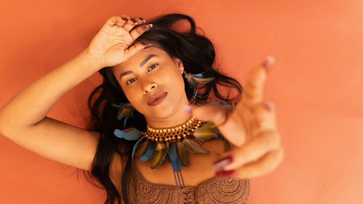 Kaê Guajajara é cantora, compositora, atriz e ativista pelos direitos indígenas e meio ambiente. Seu trabalho musical tem a inovação e as raízes ancestrais indígenas com diversas influências culturais. Nascida no MA e criada no complexo de favelas da Maré (RJ), Kaê é engajadora da MPO (Música Popular Originária) e expande, a partir de suas composições, a visibilidade dos povos originários no mundo presente.