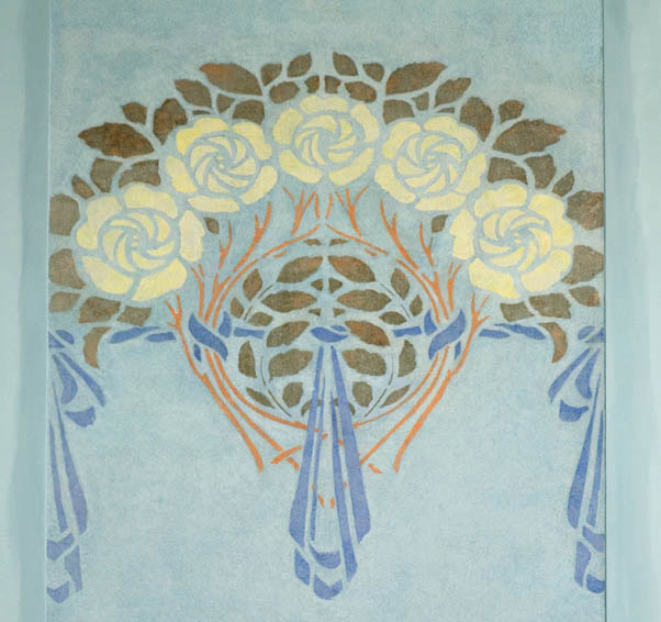 Testemunhos de pintura mural decorativa de parede e teto incluída no período didaticamente compreendido pelo Ecletismo, das primeiras décadas do século XX, associadas à linguagem Art-Nouveau e Arte Decó do edifício. A técnica é composta pela aplicação de desenhos modulares ou repetitivos sobre fundo de pintura lisa. A repintura tem como referência trechos originais ainda existentes. A intervenção compreendeu a remoção das camadas subsequentes, a repintura do fundo (pintura lisa) e a reintegração da policromia (pinturas Modulares).