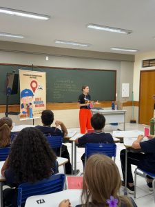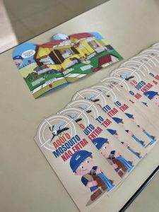 A atividade consistiu em um jogo de perguntas com os principais mitos e verdades sobre a dengue, onde os alunos puderam testar seus conhecimentos e aprender conceitos importantes da doença, seu ciclo reprodutivo, principais criadouros e comportamentos preventivos para remoção mecânica dos criadouros.
