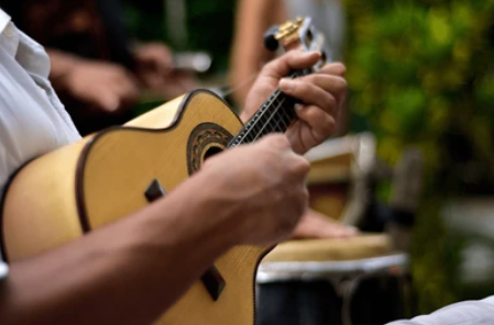 O cavaquinho é um instrumento de cordas de origem portuguesa, que se tornou um pilar fundamental da música brasileira, especialmente no samba e no choro. Possui quatro cordas, tradicionalmente de aço, e um corpo pequeno em formato de “oito”. Atua tanto na parte harmônica (acompanhamento com batidas e palhetadas) quanto na melódica (solos rápidos e virtuosísticos). No Brasil é usado com palheta e possui uma caixa de ressonância que evoluiu para projetar um som brilhante e percussivo.