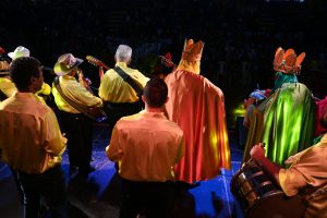 Cada companhia empunha sua bandeira e, por meio de música e encenação, realiza sua homenagem ao dia dos Reis Magos, refletindo o modo como populações originalmente de zonas rurais do Brasil celebram esse momento.