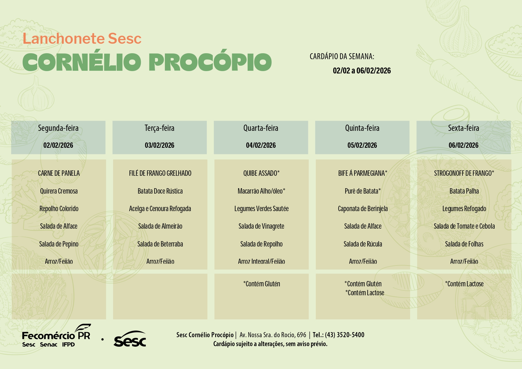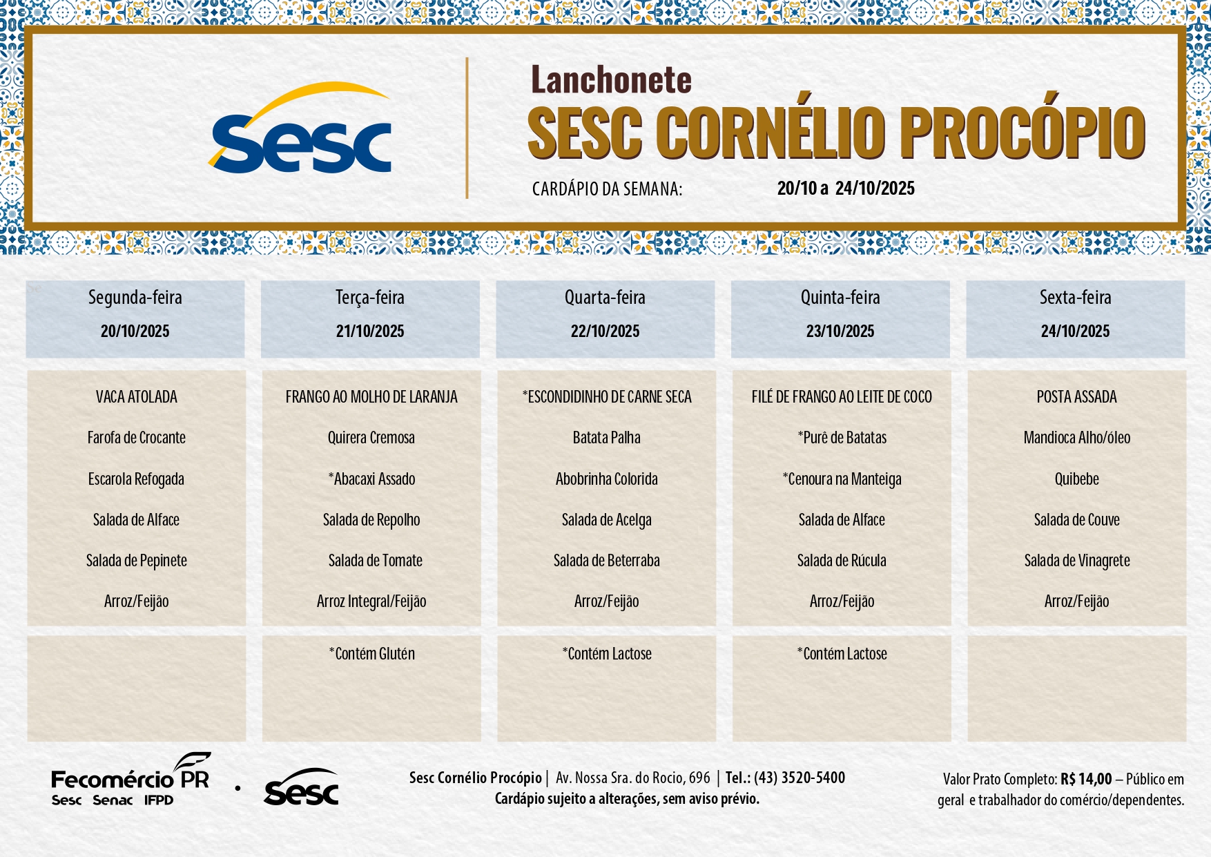 NA LANCHONETE SESC CORNÉLIO PROCÓPIO VOCÊ ENCONTRA: