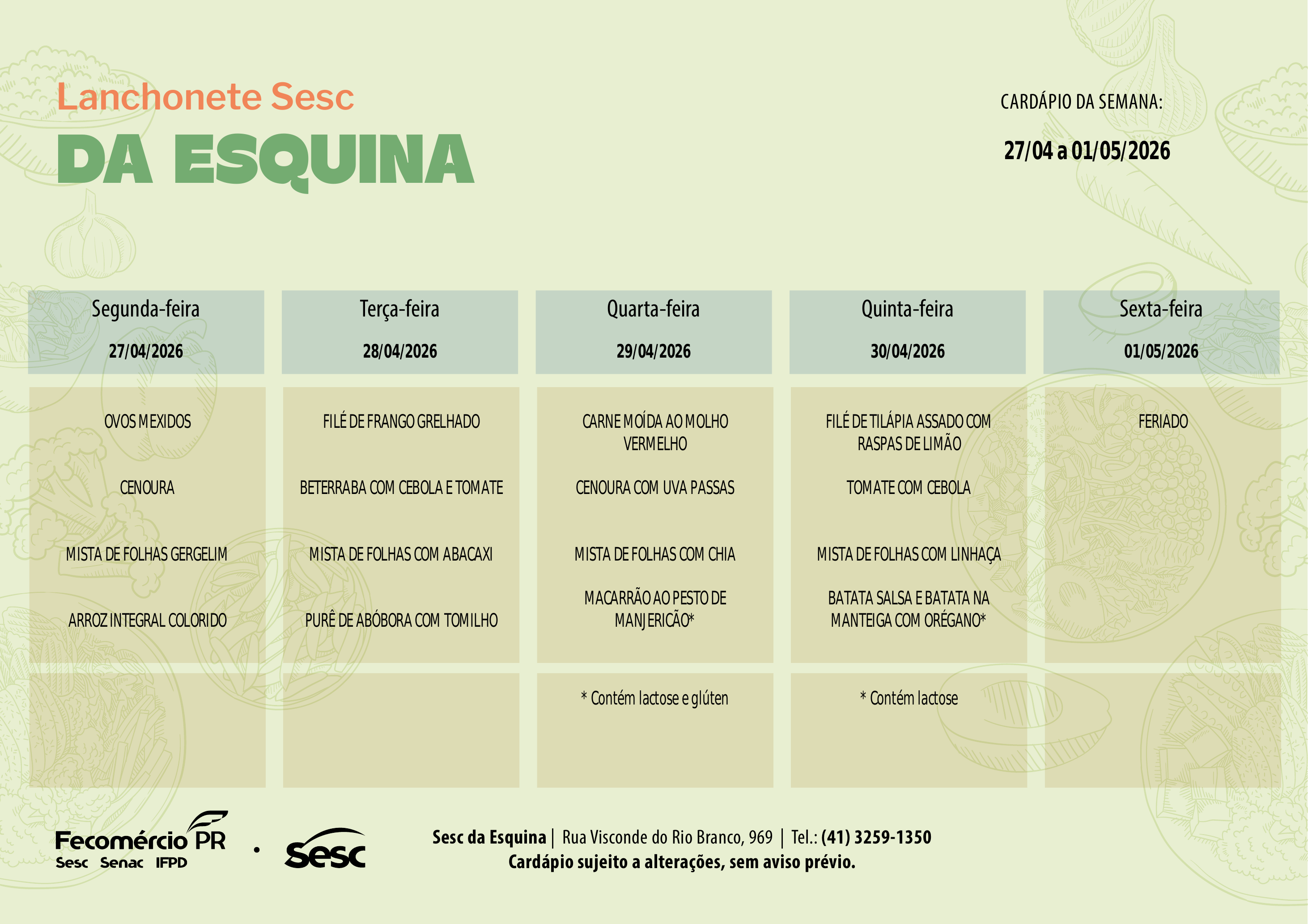 NA LANCHONETE SESC DA ESQUINA VOCÊ ENCONTRA: