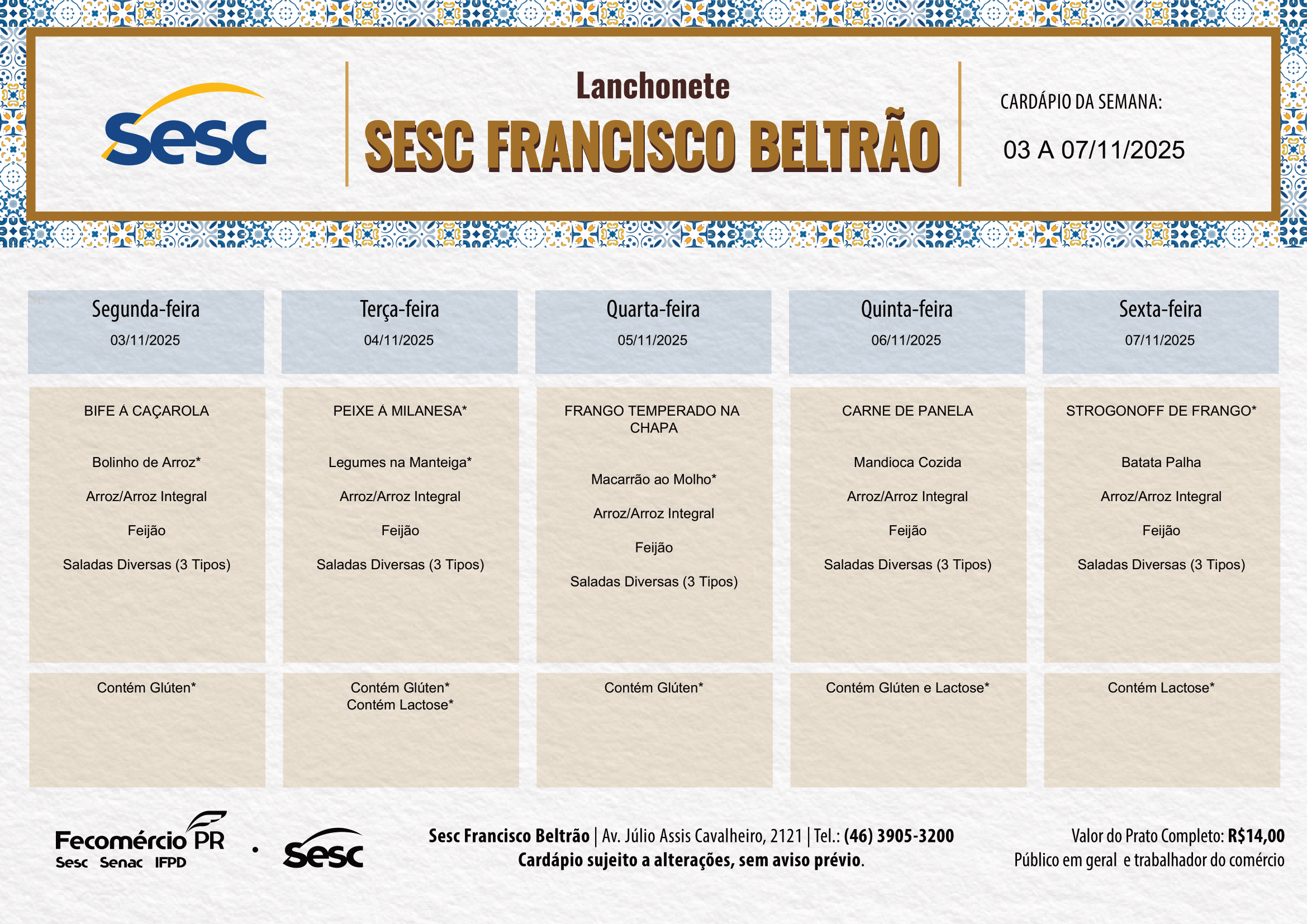 NA LANCHONETE SESC FRANCISCO BELTRÃO VOCÊ ENCONTRA: