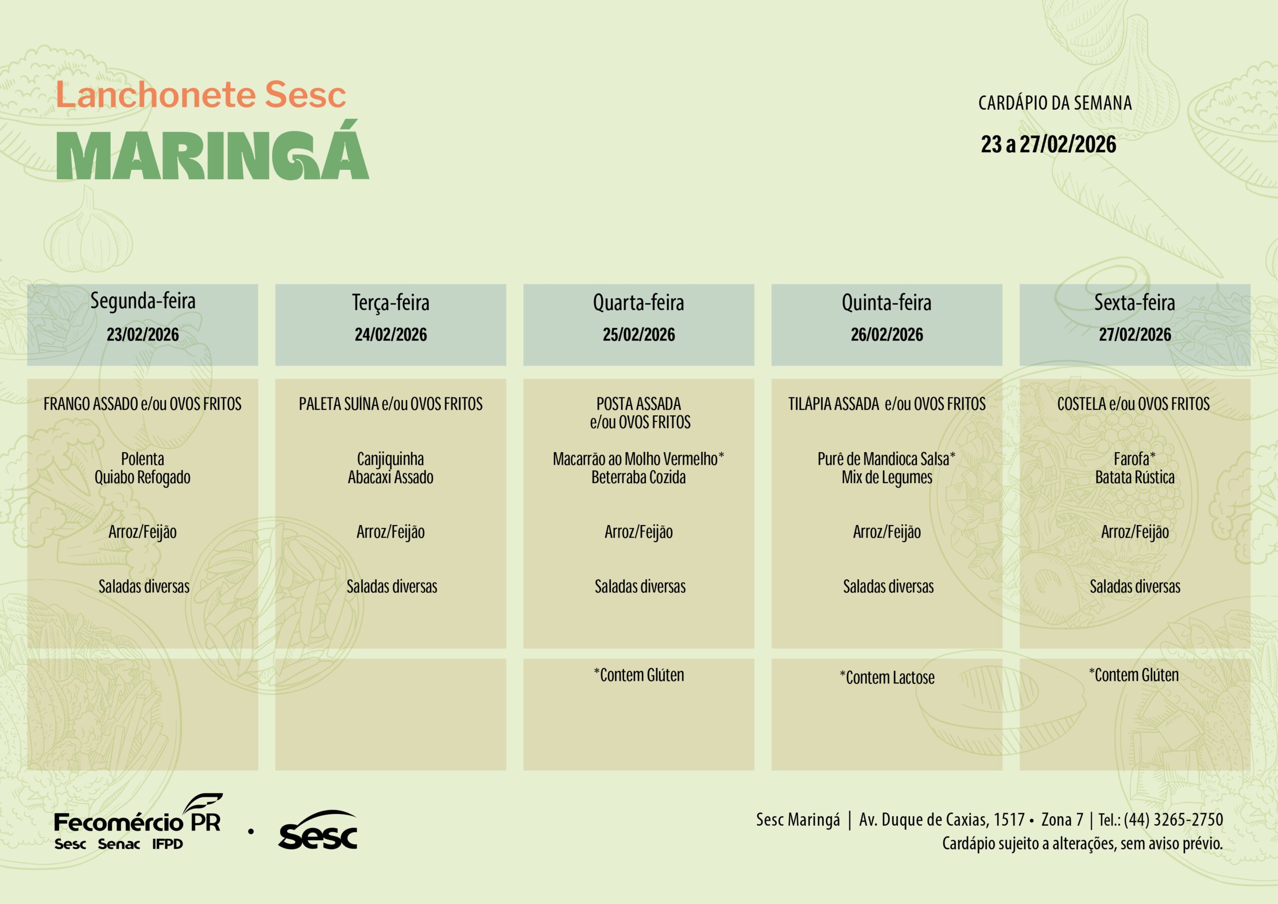 NA LANCHONETE SESC MARINGÁ VOCÊ ENCONTRA: