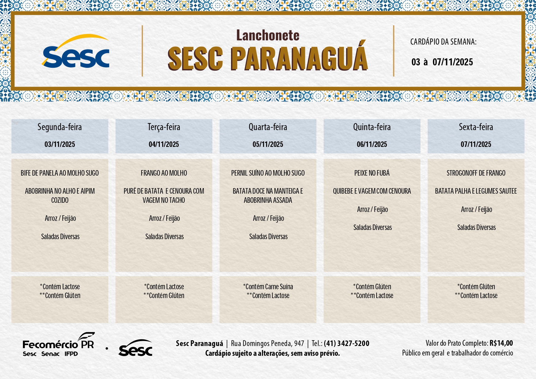 NA LANCHONETE SESC PARANAGUÁ VOCÊ ENCONTRA: