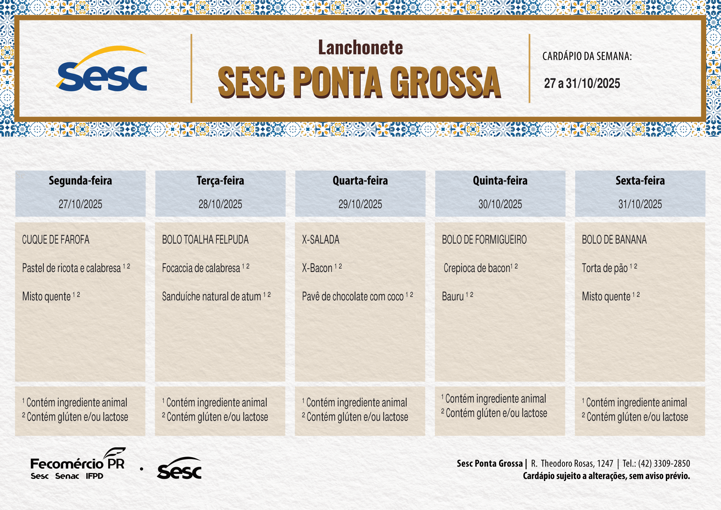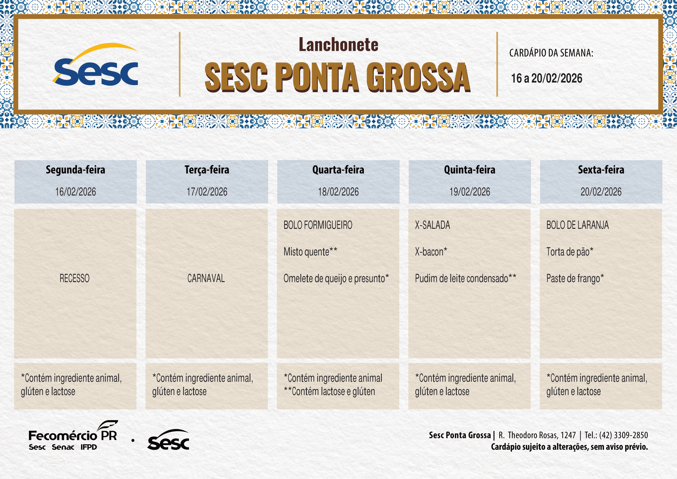 NA LANCHONETE SESC PONTA GROSSA VOCÊ ENCONTRA:
