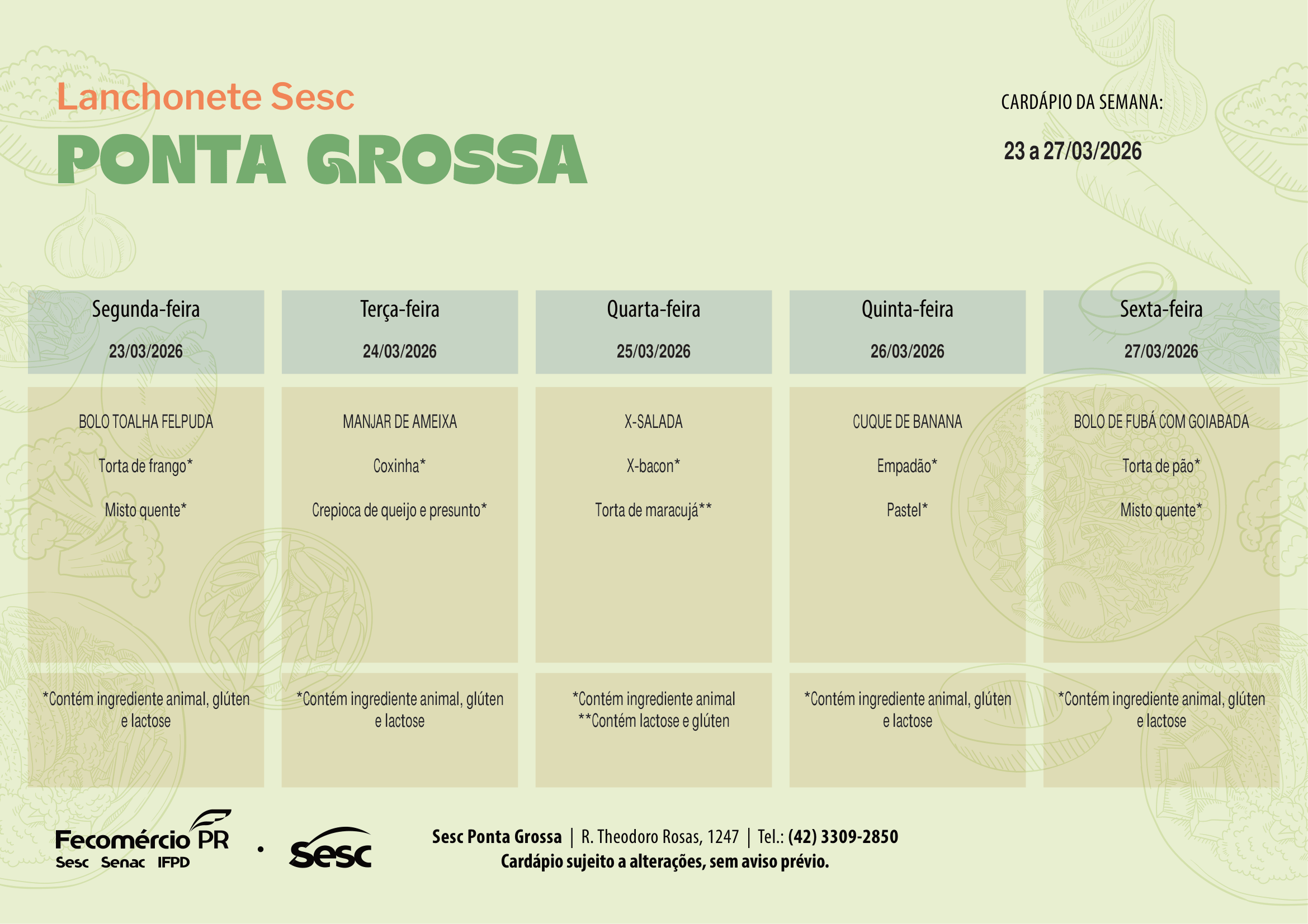 NA LANCHONETE SESC PONTA GROSSA VOCÊ ENCONTRA: