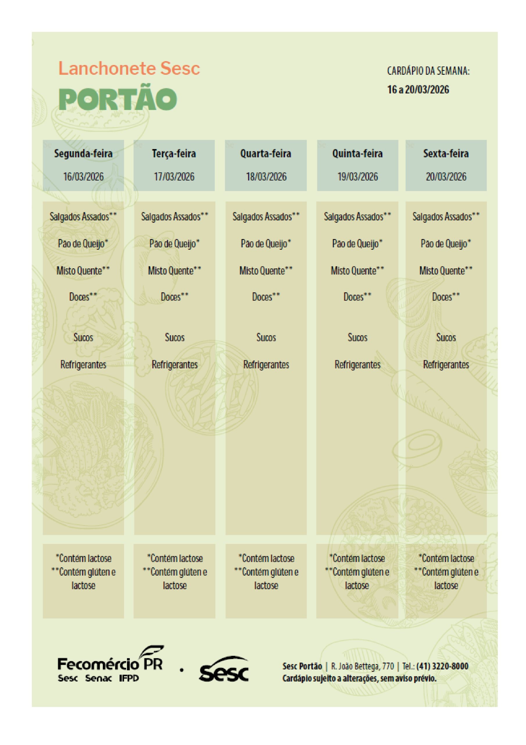 NA LANCHONETE SESC PORTÃO VOCÊ ENCONTRA: