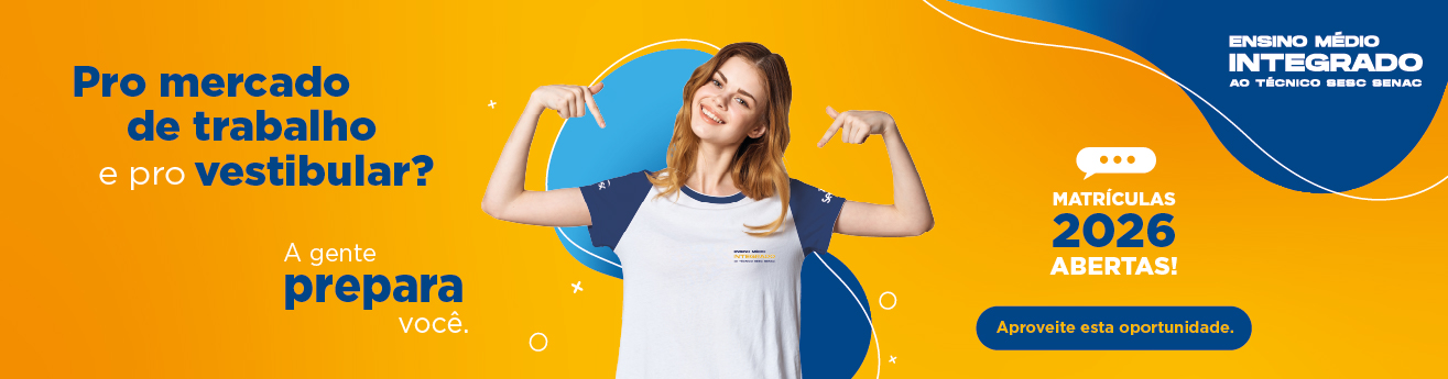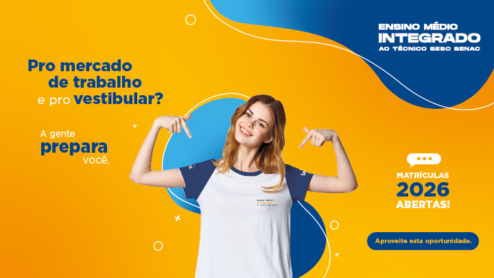 Processo seletivo para bolsas gratuitas para o Ensino Médio Integrado ao Técnico Sesc Senac para o ano letivo de 2026