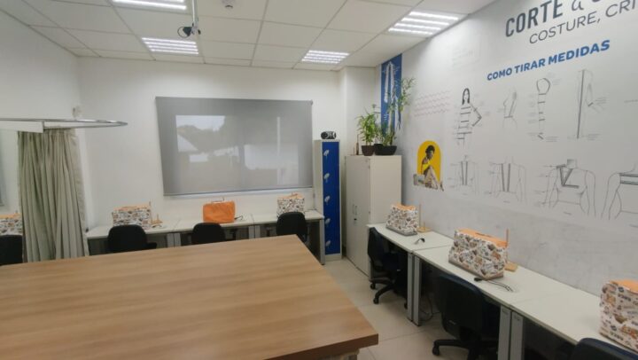 O espaço tem capacidade para 10 alunos por turma, e conta com máquinas domésticas e industriais no seu espaço.